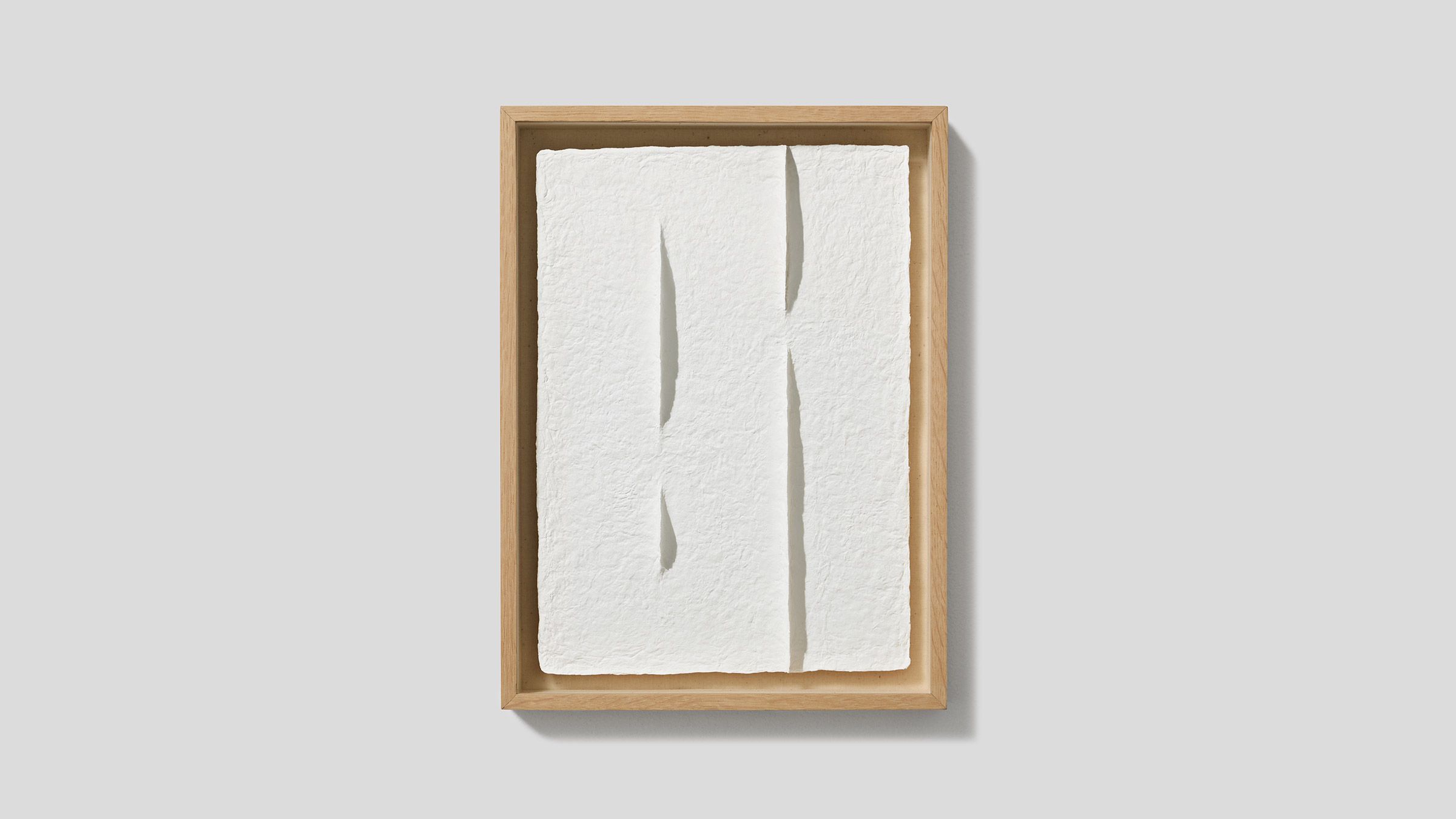 Colour is reduced to nuanced tones of white, guiding the viewer toward the density of the surface, the tactile quality of the material, and the movement of light. In this reduced chromatic field, perception slows and the work is experienced as a quiet landscape.